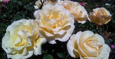The floribunda roses give a continuous cluster of flowers from late spring to late fall. They are hardier than hybrid teas and are good for mass plantings or low hedges.