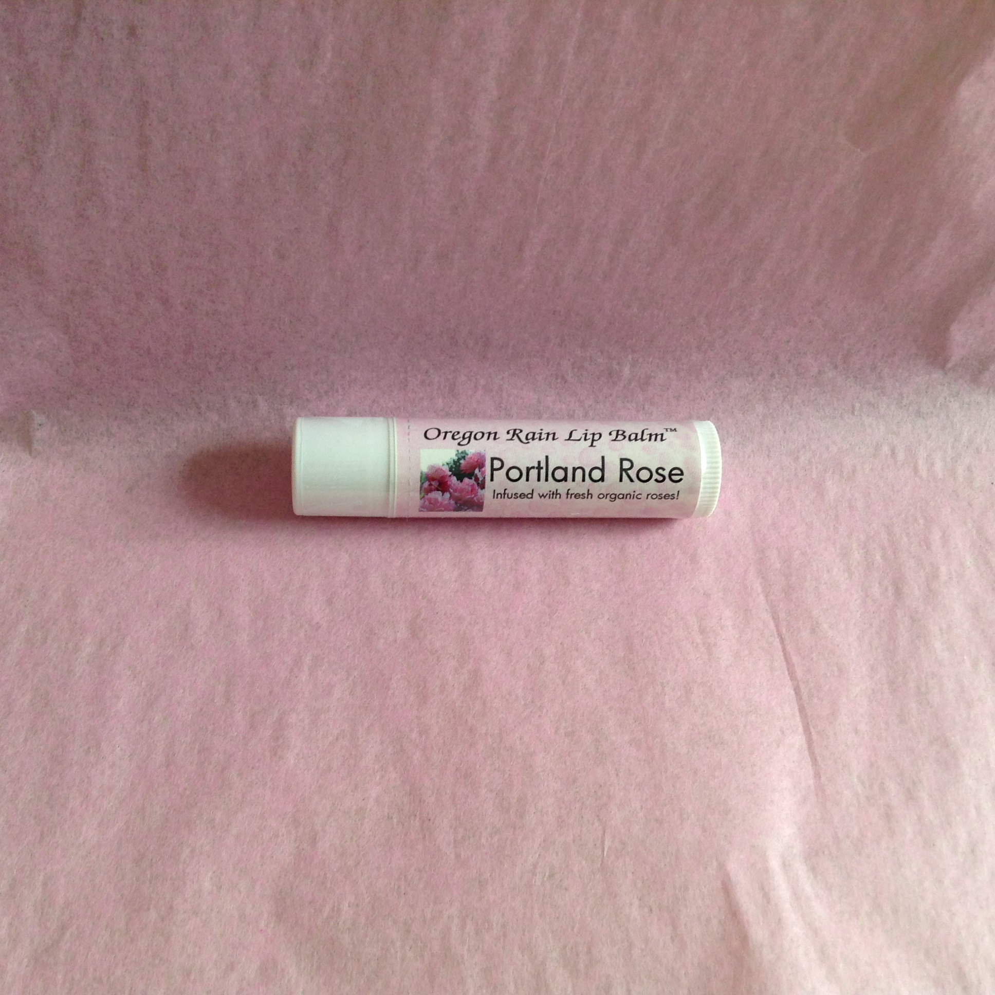 This lightly rose scented lipbalm is locally made using Oregon rainwater. It is uncolored and infused with organic roses.
